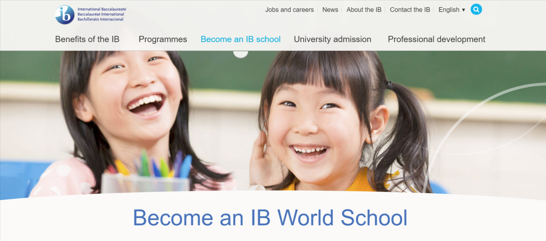 Foregrounding information on how to become an IB school, a key conversion action for the business.